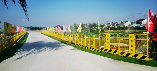 项目部高度重视安全文明施工工作,建立了完善的安全管理体系。在开工前,对所有施工人员进行了全面的安全培训,施工现场设置了明显的安全警示标识,对危险区域进行了隔离防护。 项目部对现场的道路河岸进行了防护隔离,确保施工人员的生命安全。所有施工人员必须佩戴安全帽、安全带等个人防护用品,高处作业时必须设置可靠的防护设施。此外,还定期对施工设备进行检查和维护,确保设备的安全运行。